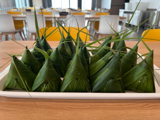 次日中午,集團(tuán)工會在員工餐廳精心準(zhǔn)備了色彩繽紛的水果拼盤、香甜軟糯的蜜棗粽子,為集團(tuán)員工送上節(jié)日祝福。大家圍坐在一起,一邊分享昨日包粽的趣事,一邊品嘗蜜粽鮮果,食堂里洋溢著歡聲笑語。