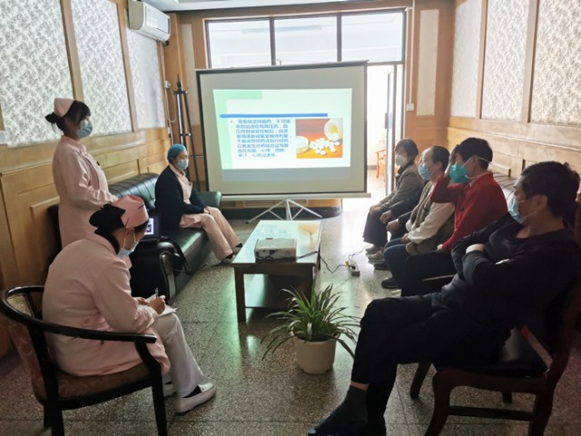 院內(nèi)健康教育常態(tài)化推進。各臨床科室護理組運用床頭宣教、健康講座、發(fā)放宣傳手冊、制作宣教視頻等多種方式,隨時隨地為住院患者及家屬傳授疾病知識、提供用藥指導(dǎo)、開展康復(fù)護理等健康教育服務(wù),覆蓋率高達100%,深受患者及家屬的認(rèn)可與歡迎。護理部還充分利用門診區(qū)域的電子屏、展板等宣傳載體,廣泛普及常見病防治知識,有效提升了患者的自我健康認(rèn)知及管理能力。