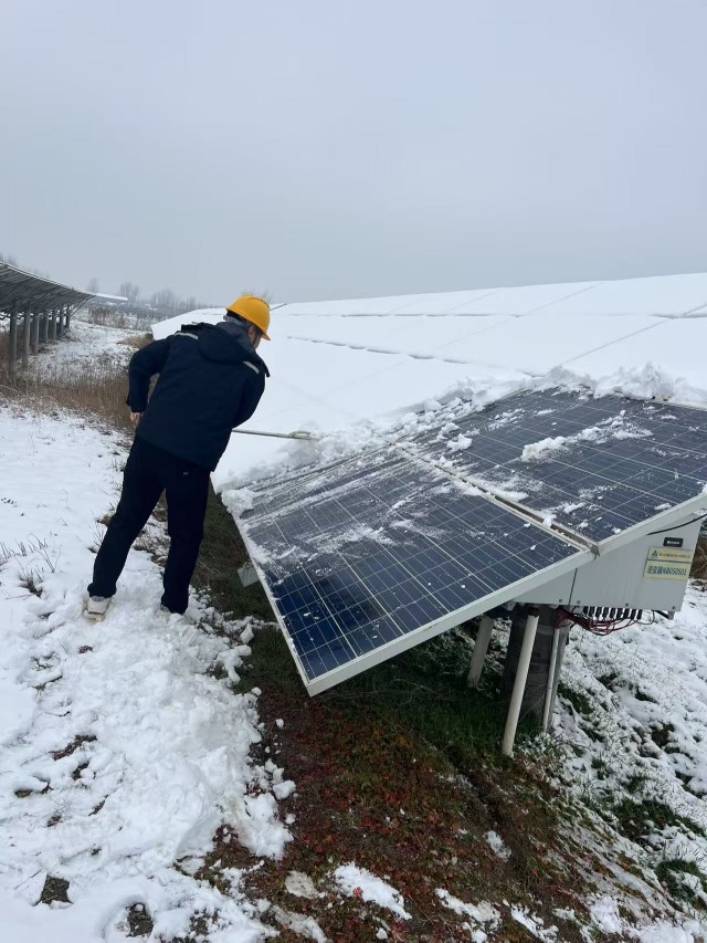 眾志成城聚合力,風(fēng)雪無(wú)阻保供電。黨員干部帶頭沖鋒,與運(yùn)維員工默契配合、協(xié)同作戰(zhàn)。經(jīng)過(guò)數(shù)小時(shí)連續(xù)奮戰(zhàn),光伏板上的積雪被全面掃清,發(fā)電效率隨之穩(wěn)步回升,電站迅速恢復(fù)穩(wěn)定運(yùn)行。隨后,團(tuán)隊(duì)趁熱打鐵,對(duì)變壓器、逆變器等關(guān)鍵設(shè)備展開(kāi)徹底清障與檢查,為冬季安全生產(chǎn)筑牢了堅(jiān)實(shí)“防護(hù)墻”。
